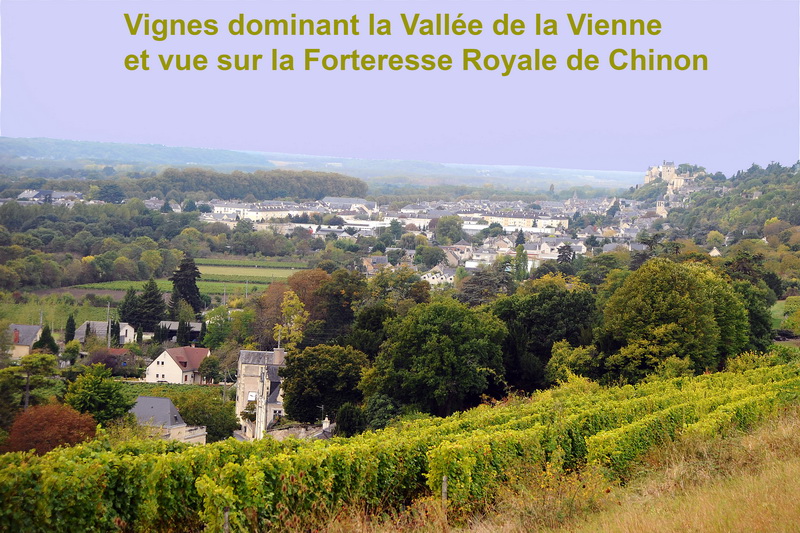 Le vignoble s’étend sur les coteaux de Chinon dominant toute la vallée de la Vienne, un affluent de La Loire, d’où l’on peut apercevoir la forteresse de Chinon.